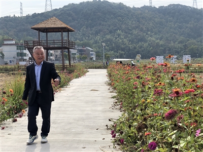 从昇光村党群服务中心出发,沿着村道走进田间地头,一路上,呼吸着泥土和鲜花的芬芳,还可以打卡各种“景点”,儿童公园、咖啡馆、露营基地……周幸轮东瞧瞧西转转,看着村子里角角落落的变化,越看越欢喜,看也看不厌。
