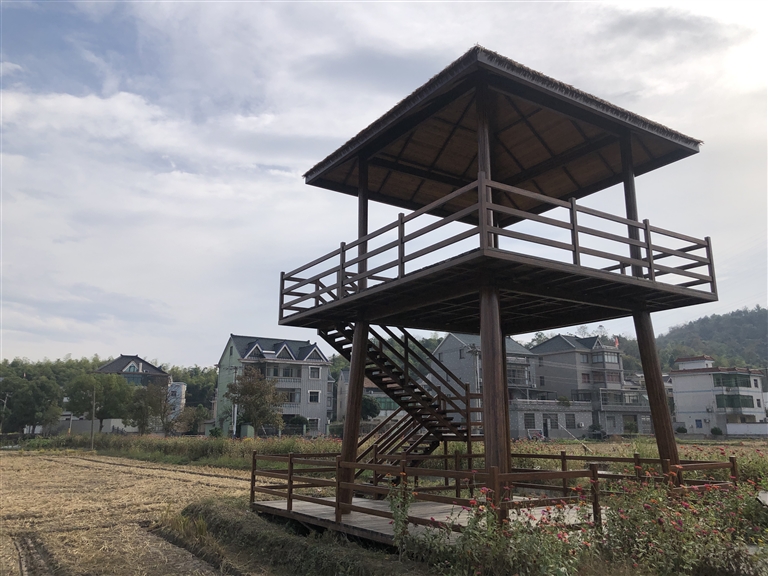 “这里从前都是很小的泥路,走路坑坑洼洼,三轮车都拉不过的。现在村里到处都铺上了柏油路,路路通,走起路来也舒心。”“原来这么好看的花,怕是要到西湖边才能看到呢,现在走在咱们村道上就能欣赏到了。”“看那边那个漂亮的建筑,它其实是个公共厕所,村里刚造的,里面设施很齐全的。”“瞧,那个高高的台子,是个观光台,经常有村民会来这里唱唱戏,还有年轻人爱来这里露营,等到油菜花开的时候,拿个凳子到上面看看花海、听听戏,多少惬意啊!”……