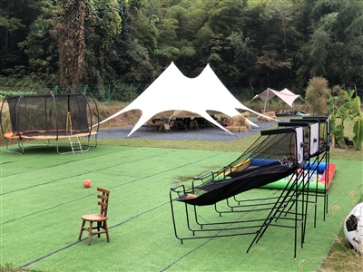 只见营地内,一顶顶白色帐篷环绕着池塘,点缀在青草地间,各类植物错落有致,野趣十足。此外还设置有一些游乐设施。周幸轮选了一处帐篷坐了下来,“这里原来就是一片荒地,看着它一点一点变成了现在这个样子,真不错啊!平时叫上几个朋友来这里喝喝茶聊聊天也蛮好的。”