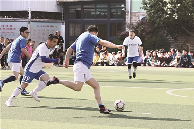 近期,江寺小学“校长杯”校园足球赛火热举行中。本次球赛除一至六年级的22支队伍外,还增加了“超级老爸队”4支队伍,使比赛更加激烈。绿茵场上,老爸们巧妙地传球,娴熟地控球,精彩的进球让大家大饱眼福。超级老爸足球队的积极参与为校园足球联赛注入了新鲜血液,也成了江寺小学足球赛的新亮点。