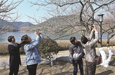 大寒将近,湘湖景区越风楼梅林初绽,幽香扑鼻。