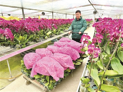 张侃介绍,自己从事蝴蝶兰的培育销售已经有12个年头了,从一开始技术、设施设备跟不上,看不到市场,销售集中在年前,到如今已经实现了“整年销售为主、年前销售为辅”。“主要还是得益于培育技术的提升和全智能无人化温室设施设备的使用,更好地做到温室内精准环境调控,配合先进的肥水一体化灌溉、合理的种植技术方案,让蝴蝶兰实现了‘想什么时候开花就什么时候开花’,更好地满足客户的多样需求。春节这波行情过后,接下来的三八妇女节、五一劳动节等,都是蝴蝶兰的热销节点。预计今年我们基地培育数量会达到32万株左右,超过以往历年。”对于新一年的市场行情,张侃表现得信心十足。