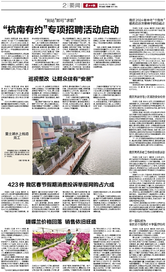 本报讯 (记者 何可人)装盘、捆扎、装车……2月26日上午9时许,在位于宁围街道顺坝村的杭州艾维园艺有限公司蝴蝶兰养殖基地内,工作人员们忙个不停。