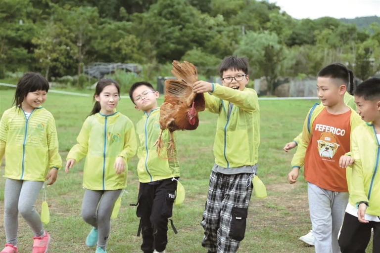 “吃鸡”真人版。绿油油的草地上,一群孩子追着老母鸡肆意奔跑。“快快快,你负责围堵那边”,在队长的带领下,孩子们分工明确,把老母鸡围得水泄不通。“抓到了,加30分!”这份快乐发自内心、源于天性,成就感无与伦比。