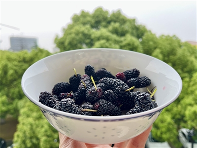 我家桑葚好吃的名声也传得快。不久,有些不认识的人比鸟儿还起得早,来我们地里摘桑葚。若说他们“偷”,其实也不是,桑葚本是野生,资源共享,但毕竟生在我家地里,所以他们也不好意思明目张胆地采摘,都是赶在鸟来之前,悄悄地摘,悄悄地走,带走一袋大老紫。