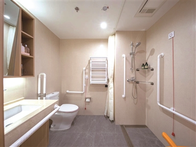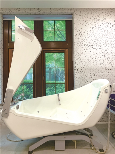 比如我们的扶手,并不是大家在日常生活中所见的圆形或长条形,而是采用和整体风格搭配,看似装饰实则是“隐形扶手”,保持去医疗化,去老化痕迹,呵护每一位长者的心理感受。又比如我们的护理床,是由长者亲测后提出体验感受,根据长者需求进行升级改良再投入使用。再比如助浴的浴缸,我们采购的是德国进口具备按摩音乐疗法的护理浴缸,能让长者充分享受助浴的快乐。