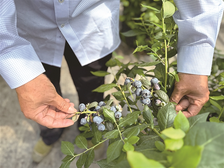 蒋张明介绍,蓝莓原产地为北美地区,属于喜寒作物,适宜生长在酸性土壤中,pH值在4.5-5.5之间为宜。在我国,蓝莓大多在北方地区种植。