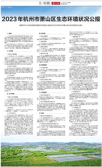~~~根据《中华人民共和国环境保护法》规定,现发布《2023年杭州市萧山区生态环境状况公报》。