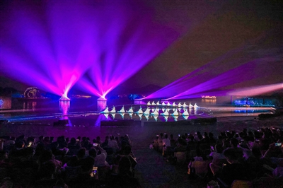 中国首部亚运遗产大型数智湖景演艺秀《湘湖·雅韵》,6月30日晚在湘湖湖山广场正式公演。观众跟随数智人火炬手“弄潮儿”的脚步,跨越时间长河,体验跨湖桥文化、良渚文化、吴越文化、宋韵文化直至现代社会文明的薪火相传。