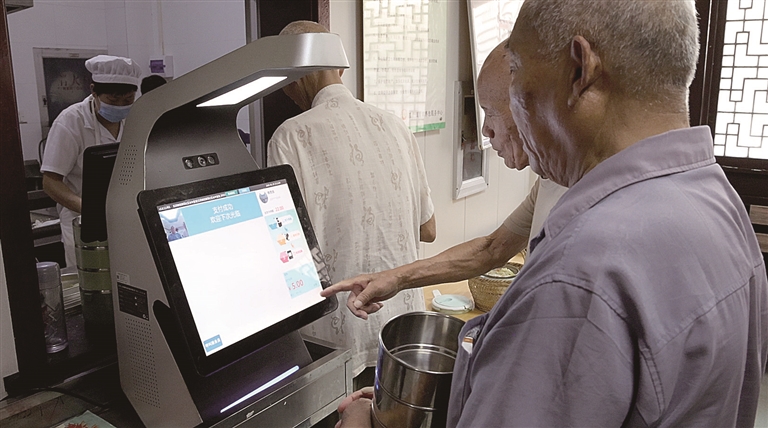 任爷爷往刷脸机前一站,只听“滴”的一声,屏幕上显示扣款5元。“这饭菜真香啊。”他找了个位置坐下,掏出自带的小酒瓶,喝一口酒,夹一筷菜,脸上露出了愉快的神情。