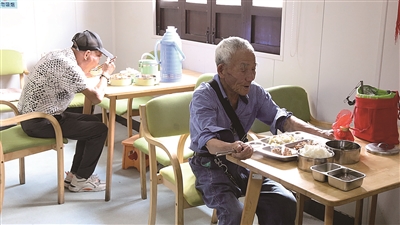 边上吃饭的老人不少,自瓜沥镇居家养老服务中心开放以来,大家都成了老相识,除了享受热乎乎的美味饭菜,大伙儿还喜欢坐在一块儿聊天、唱戏、打牌。