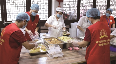 2022年10月刚开业时,芭蕉砚社区老年食堂只提供堂食,最多可同时容纳50位老人就餐。到2023年9月,老年食堂的助餐范围进一步扩大,开始为瓜沥镇18个村社80周岁以上的老人送餐上门。每天中午10点半前,食堂工作人员将热乎乎的饭菜打包,由4名送餐员开着车,将270多份饭菜一一送到各村社的助餐点。