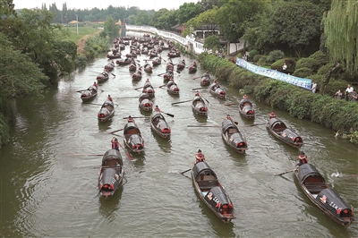 历史悠久的乌篷船是绍兴独特的水上交通工具,举行比赛的浙东运河是中国大运河的重要组成部分,水乡绍兴以这种特殊的活动方式庆祝中华人民共和国成立75周年,同时也纪念中国大运河申遗成功10周年。