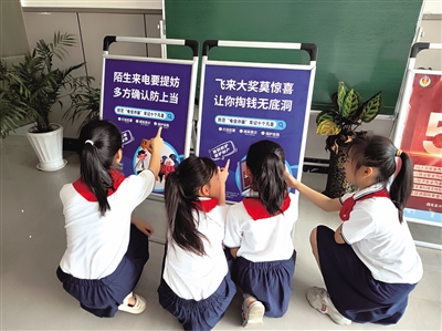 随后,队员们化身“小小反诈宣讲员”走进社区人员较为集中的场所开展反诈宣传。他们有的在公园旁边分发反诈传单,有的站在路口进行宣传:“叔叔阿姨,如果你收到可疑短信、电话一定要注意哦,可能是骗子哦……”“接到诈骗电话不要慌,做到不听、不信、不转账哦……”“请一定要下载国家反诈中心APP,骗子的电话就打不进来了……”这是“小小反诈宣讲员”们在开展反诈宣传时向群众们所做的提醒,一句句干货满满的反诈知识让人听着入耳又入心。叔叔阿姨们面对这群稚嫩却热心的队员们纷纷竖起了大拇指,答应队员们一定注意防范,将诈骗电话“扼杀在摇篮里”,保护好自身的财产安全。