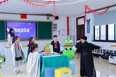 儿童剧本杀《大战时间杀手》的剧情围绕6位小学生被时间杀手困在游戏世界里的情节展开。在时间管理局工作人员“绿小签”的带领下,同学们化身探案小分队,开启一场“披荆斩棘”的闯关之旅。大家在完成一次次解谜游戏后,顺利逃出房间,并通过分析线索,最终抓捕了时间杀手,摆脱困境回到现实世界。