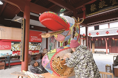 新年临近,在河上镇溪头村,老手艺人正忙着扎制国家级非遗——河上板龙。据悉,河上龙灯胜会将于正月初五举行开光大典,之后出灯巡游。