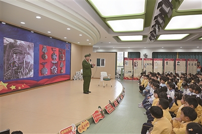 昨日,区退役军人服务中心联合临浦镇第一幼儿园、兵之初公益服务中心开展“聆听功臣故事·共忆峥嵘岁月·互动体验军事”活动,邀请萧山革命烈士陵园讲解员、抗美援朝老兵胡庆雄和对越自卫反击战一等功臣李景才,为小朋友们讲述革命故事,传承红色基因。 记者 范方斌 摄