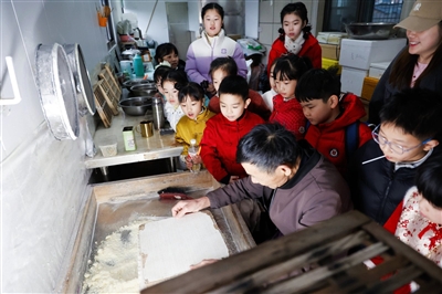 义桥的公泰朝糕承载着悠久的历史和文化记忆。此次研学活动特别邀请了公泰朝糕传统技艺传承人韩国桥,为孩子们带来一场别开生面的非遗体验。