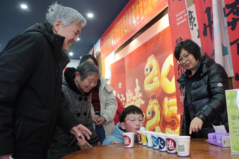 活动现场,精心布置的猜灯谜迅速成为了居民们争相参与的热门环节。五彩斑斓的展板上张贴着各式各样的灯谜,内容丰富多彩,从历史典故到文化知识,再到生活常识,应有尽有,既富有教育启发性,又充满了趣味性。居民们或驻足凝思,或三五成群热烈讨论,每当有人猜中谜底,脸上便洋溢着满满的喜悦,兴高采烈地前往兑奖处领取小奖品,整个现场洋溢着热烈而欢快的气氛。此外,社区还特别设置了以技巧挑战与寓教于乐相结合的“清廉”主题吹乒乓球游戏,不仅考验了参与者的手眼协调能力和反应速度,更在轻松愉快的氛围中,让清廉理念潜移默化地深入人心,赢得了居民们的广泛好评。