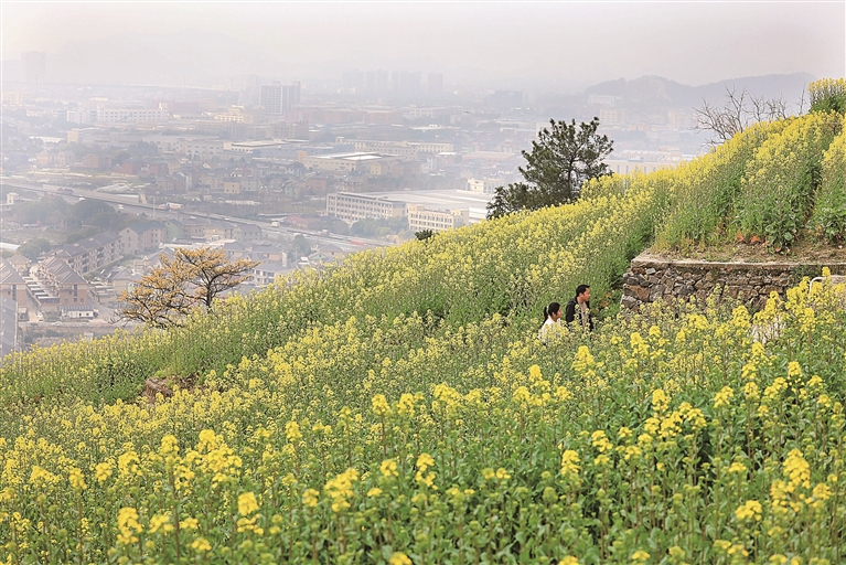 近日,所前镇山里王村的油菜花梯田进入盛花期,层层叠叠的油菜花沿山势铺展,如金色的绒毯。微风吹过,花海泛起金色波浪,吸引众多游客前来打卡,带动乡村旅游升温。