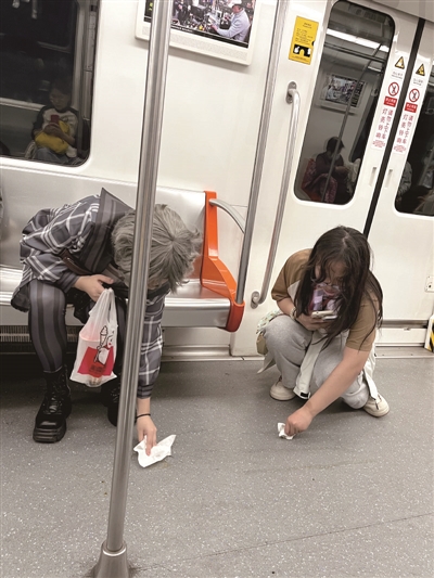 | @清水 为她们点赞 地铁2号线上,坐在我对面的一位姑娘不小心打翻了一杯饮料,里面的果汁和珍珠洒在了地上。她们望望这望望那,确实有点尴尬,但最后她们还是蹲了下来。坐她们旁边的姑娘也从包里拿出纸巾递给她们,两个姑娘一起把洒落的果汁给处理干净了,为她们点赞。遇到麻烦时,不要怕难为情,自己的事情最好自己收拾干净,不给他人增添麻烦。 |