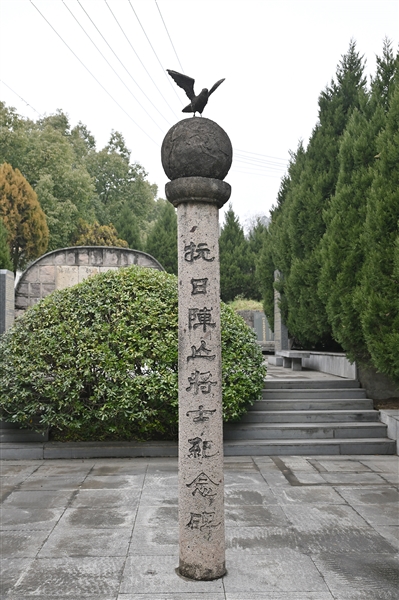 这里面记录的,就是程利科连长参与的章潘桥之战。在此次战役中牺牲的抗日阵亡将士,都被掩埋在所前镇山联村夏山埭自然村西部鹭鸶山南坡上。如今,烈士墓、纪念碑还原如故,陵园扩建一新,沿着鹭鸶颈坡,拾级而上,两边松柏郁郁葱葱,“抗日阵亡将士纪念碑”伫立陵园中央,纪念碑圆柱两侧的“中华民国廿九年五月”和“陆军第十军一九零师第五七零团第三营”刻字仍然清晰可见。