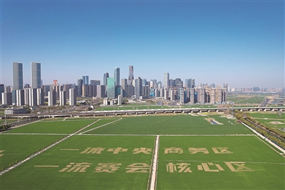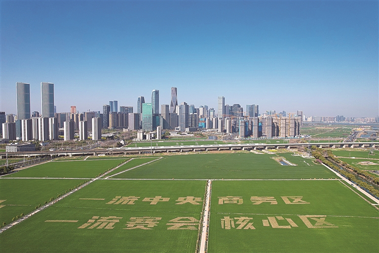 春日里,钱江世纪城麦田CBD,碧绿的小麦与金黄的油菜花生机勃勃,摩天楼宇勾勒出都市天际线,高铁列车风驰电掣,共同绘就一幅产城融合、疾驰向未来的时代画卷。 记者 范方斌摄