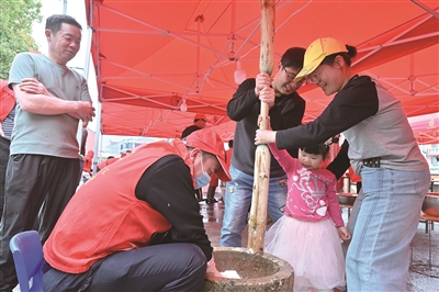 清明假期,河上镇第六届紫东村麻糍节闹猛开启,吸引不少游客前来体验传统手打麻糍的制作过程,品尝麻糍的软糯香甜味道。