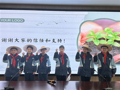 随后,“农业公司”将校内劳动实践基地60%的土地,向全校班级进行招标。竞标班级一一介绍自己的承包优势、本学期种植养护计划和预期成果。最终,有6个班级以高票获得承包经营权。而学校30多棵果树的养护则继续由上学期的认领班级来管理。