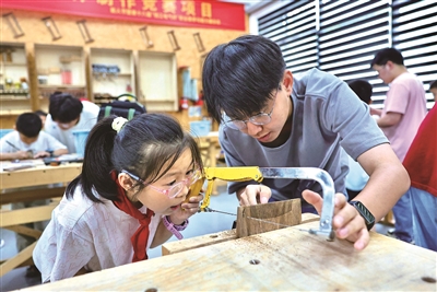 近日,来自宁围街道新安社区的“小公民”背着小书包,带着好奇走进杭州萧山技师学院,开启一堂生动的鲁班课,通过老师的耐心指导,制作了人生的第一把木梳子。