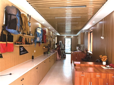 “墙上挂了很多登山用具,我和老头子每天早上都要爬西山锻炼身体,还加入了社区的登山队。现在我们去登山,常常来这里借登山杖,一屋多用,这才是真的惠民啊!”居民张阿姨笑呵呵地说道。