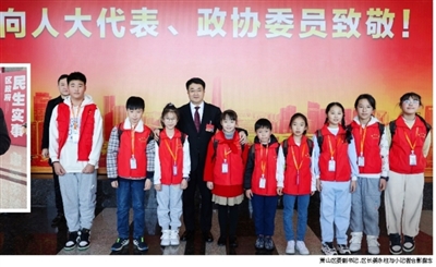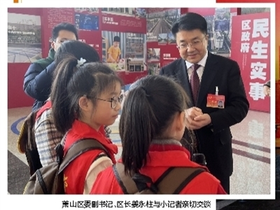 我们小记者还受到了萧山区委副书记、区长姜永柱叔叔的肯定。姜叔叔指点我们道,“一名小记者最重要的是会说、会写、会问,也要有信心。比如玫瑰,我们可以看花瓣,观察上面的飞虫采蜜,还可以联想到‘赠人玫瑰,手有余香’这句话,帮助别人也会收获快乐。”姜叔叔的一席话,让我想到,作为优秀的小记者更要多观察身边的人和事物,发现生活中的点滴美好,及时用笔墨将这些时刻留存。最后,姜叔叔还跟我们合影了。我为能亲身参与两会而感到自豪。(指导老师:刘小钰)