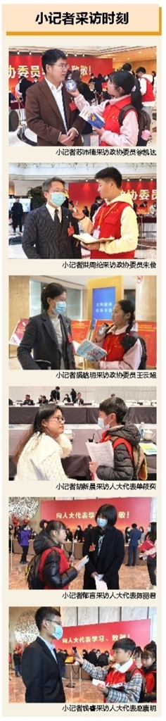 这次采访活动对于我来说是一场不一样的考验,虽然辛苦,但是开阔了视野,学到了许多书本中没有的知识。想到今年两会的声音不再是电视中遥不可及的新闻,而将通过我们小记者的话筒传递出去,我内心就充满了自豪,同时也欣喜自己能够在这样一个重要时刻,成为见证者和记录者。两会采访,必将成为我人生中极其珍贵的经历和记忆!(指导老师:金叶飞)