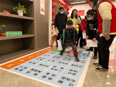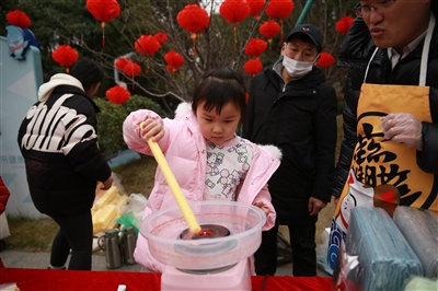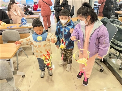 在当天下午的文化市集上,各类特色小摊人流涌动,热闹非凡。捏糖人、吃糖葫芦、做棉花糖、扎灯笼、“学习强国”知识竞猜赢礼品……市集上到处洋溢着浓浓的“民俗味”。居民们兴致盎然地打卡通关,赢取各种小礼品。