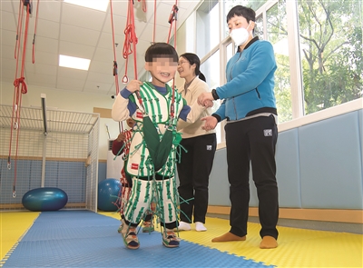 作为我区唯一亚残运会残疾人事业展示点——区残疾人综合服务中心,经过半年的提升改造,以崭新的面貌亮相。面积超大的感统教室、悬吊治疗室,专业特色的全日制教室、水疗设备,有趣的虚拟教室,沉浸式训练系统等让人耳目一新。图为身穿“太空衣”的儿童在接受悬吊治疗。 记者 范方斌 摄