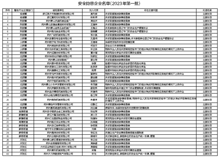 现将2023年第一批安全隐患企业名单在媒体上进行曝光,接受社会监督。
