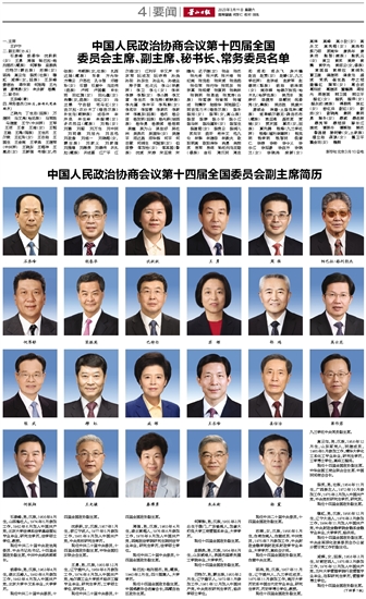 中国人民政治协商会议第十四届全国 委员会主席、副主席、秘书长、常务委员名单