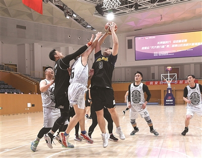 近日,礼赞新时代 奋进新征程——迎亚运“光大银行杯”第二届区直机关篮球邀请赛在区体育中心开赛,15支球队将以球会友、一较高下。图为机关联队和综合执法队比赛中。 记者 范方斌 摄