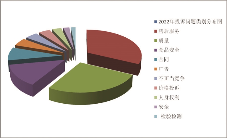 2022年,投诉件按问题类别划分,涉及售后服务的投诉最多,共8443件,占投诉总量的21.79%。与2021年相比,不正当竞争和人身权利投诉增幅最大,分别增加195.76%和94.94%,前十名各类投诉都上升明显。