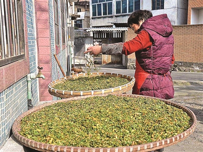 傅老师说,当时他是去所前山里王村拍摄茶叶的,发现村里有的人家已经趁着好天气在院子里铺好了竹匾晒霉干菜。