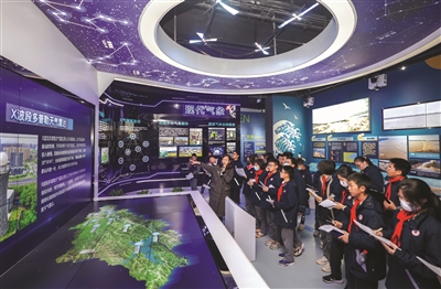 在3月23日“世界气象日”到来之际,区气象局的气象场馆开放日活动,吸引了众多市民前来参观。图为杭州竺可桢中学的学生在气象科普工作人员带领下,开展“聚焦气象 亚运为伴”的科普实践,参观体验馆学习气象知识。 首席记者 唐柯 通讯员 蒋静怡