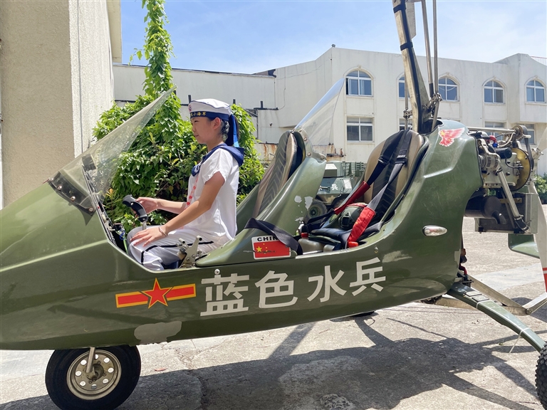 在五天四晚的研学营中,我们的角色是海、陆、空全能兵,我们参观了科探中心、探访了部队的水面舰艇、登上了有海上不倒翁之称的帆船,体验了它在海上晃动的小刺激。我们还体验了旋翼直升机和轮式步战车,我和小伙伴们都惊呆了,这些平时只能在电视里看到的“大铁块”,居然让我们这么零距离地接触。旋翼直升机令我印象最深的就是它轰轰作响的声音。而坐进轮式步战车的感觉就完全不一样了,太帅了!在教官们的讲解下,我们个个都露出崇拜的小眼神,不禁感叹,我们的国家真是太强大了!