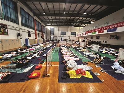 午休时间,在学校大体育馆里,厚厚的窗帘隔绝了光线,多台空调带来了舒适的温度,孩子们躺在大大的垫子上,盖着各色的小毯子,进入了甜蜜的梦乡。老师们则放轻脚步,查看每个孩子的情况,或是整理一下孩子们脱在一旁的鞋子和外套,或是给孩子们拉一下被子。