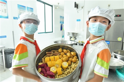 “我这个料好多,五颜六色,太好看了”“闻起来好香呀”“快点,多加点柴火,马上要出锅了”……9月7日,新街小学的孩子们当起“小厨师”,上了一堂特别的“劳动课”。他们戴上厨师帽,烧火开灶,亲手制作了黄桃银耳羹、五谷丰登两道甜点,并作为教师节礼物送给了老师们,让老师们度过一个最“甜”的教师节。