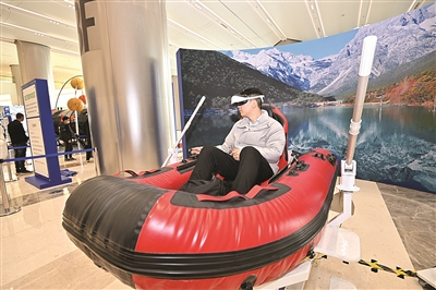 “这是《流浪地球2》同款机械外骨骼!”在智慧航空馆内,有众多航空航天的重磅产品首发首展,ARJ21支线客机和C919大飞机的1:20大比例模型、中国民航首个垂直大模型“千穰”、国内首台车载式智能化移动停机坪……与智慧机场息息相关的高科技系统和设备亮点十足,让人不禁感叹赛博朋克不远,未来已来。