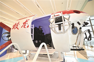 陆地有“猛虎出征”,海底自然有“蛟龙盘涡”。蛟龙号深潜体验模拟器采用真实的蛟龙号等比例外仓外壳模型、六自由度运动平台,坐进去可一键切换深海世界,体验者直呼过瘾。