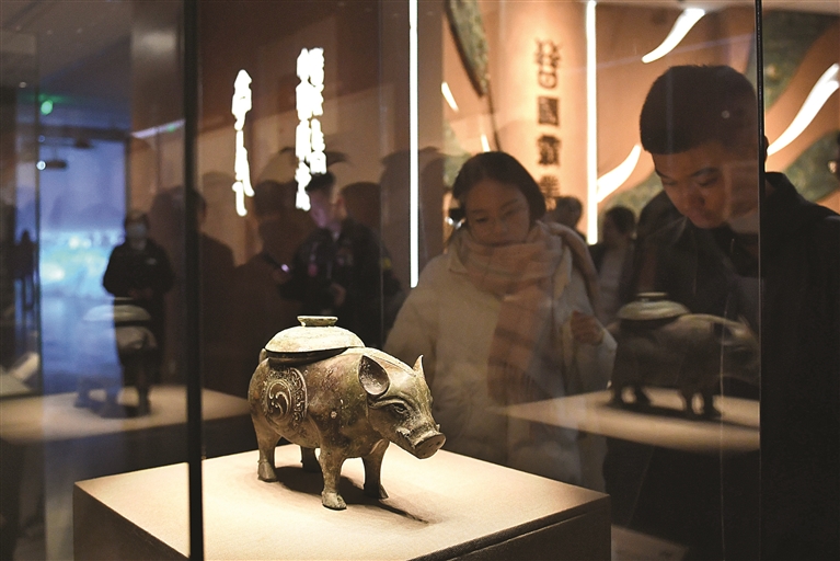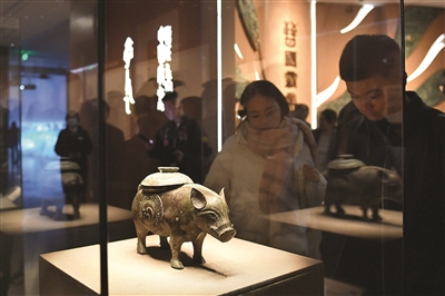 12月1日,观众在长沙博物馆“晋国霸业——山西出土两周文物精华展”参观展品猪尊。