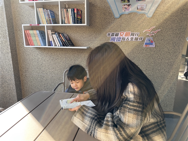 墙上的书架上,整齐的摆放着各类书籍,既有《红楼梦》等古典名著、《我们仨》《秋园》《追风筝的人》等畅销书,还有《中华上下五千年》《世界未解之谜》等适合孩子阅读的书籍。一个书架、一张桌子和几把椅子,宁安社区充分利用楼道间的共享空间,开拓“书香网格”模式,以微网格为单位,建立小小书吧,放置优秀报刊杂志、文化书籍,为居民提供免费阅读书籍与空间,通过嵌入式文化服务,号召居民“每天阅读一小时”,培养良好的阅读习惯。