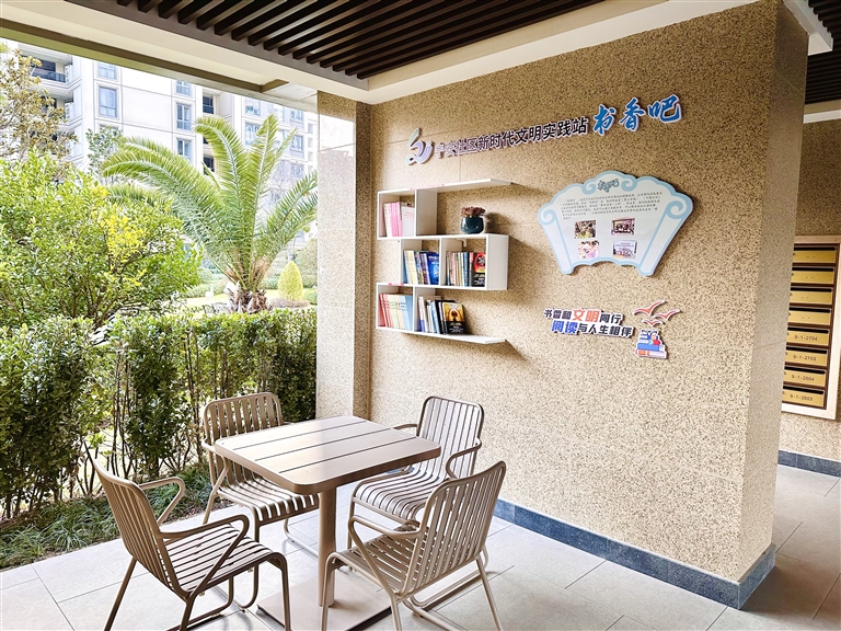 连日来,宁安社区拥潮府小区架空层人气很旺,每天都有很多居民到这里坐坐,读读书看看报,打卡“每天阅读一小时”。12月28日《萧山新闻》还对这里进行了报道,这就是宁安社区构建书香社区的新举措——“新时代文明实践站书香吧”。