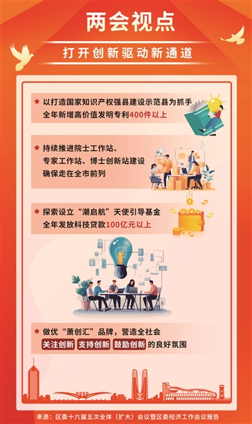 未来,萧山还将以打造国家知识产权强县建设示范县为抓手,高质量完成知识产权服务中心建设,积极引育知识产权服务机构,鼓励高价值发明专利创造;持续推进院士工作站、专家工作站、博士创新站建设,确保走在全市前列;进一步优化科技金融产品和服务,探索设立“潮启航”天使引导基金,优化科技贷款政策引导,持续做优“萧创汇”品牌等,从而吸引更多优质项目和人才团队关注萧山、落地发展。